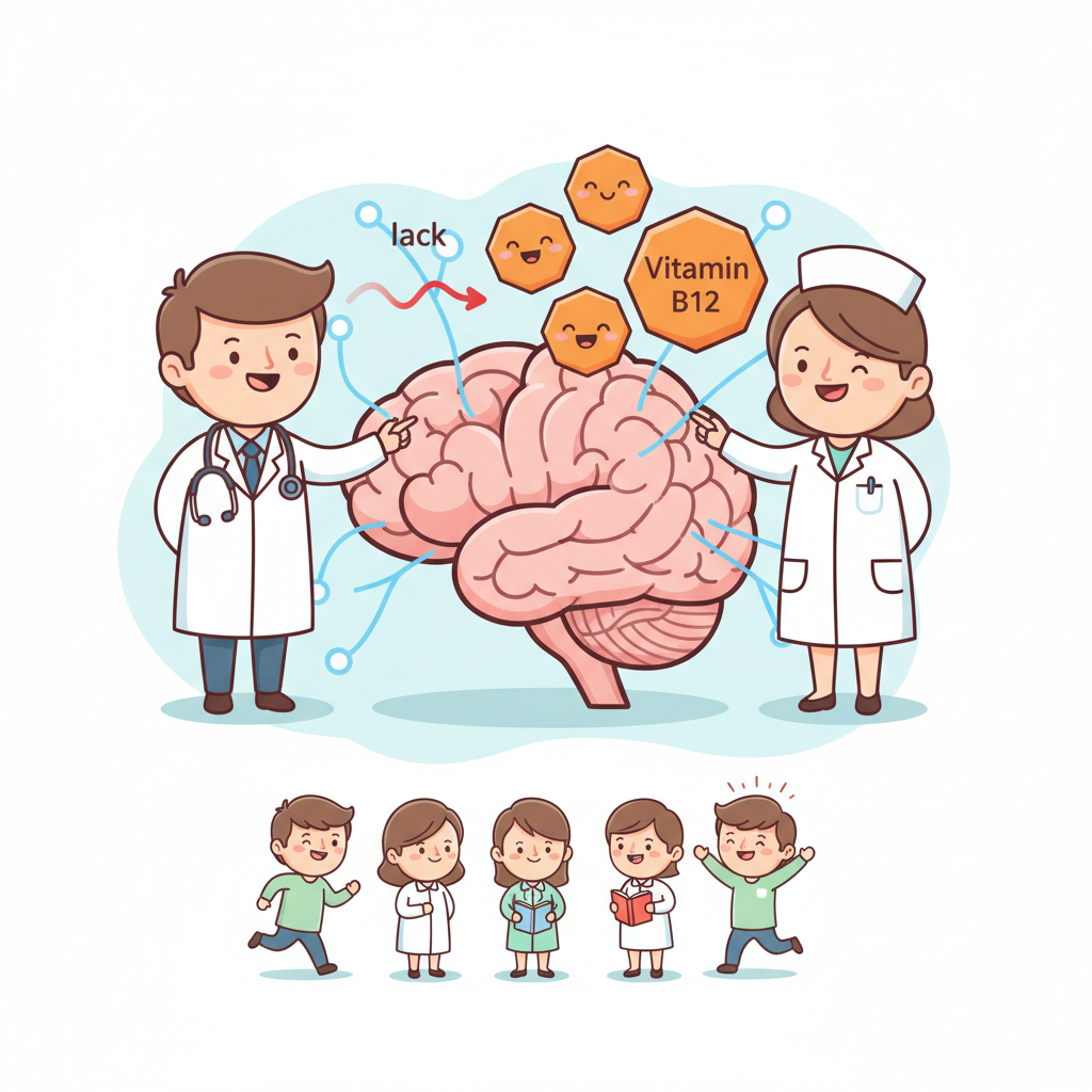 - 神經髓鞘形成:這是本文的重點,維生素 B12 對於維持神經纖維外層的髓鞘至關重要。