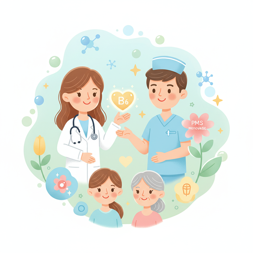 維生素 B6 是一種重要的營養素,可能對緩解 PMS 和更年期症狀有所幫助。它參與神經傳導物質的合成、調節體內水分滯留、改善血糖控制,以及維護骨骼健康。然而,維生素 B6 的效果因人而異,建議諮詢專業人士,了解適合自己的攝取量和治療方案。