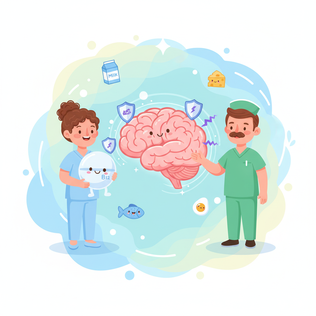 維生素 B12 在腦部健康方面扮演著多重保護角色,以下是一些重要的機制: