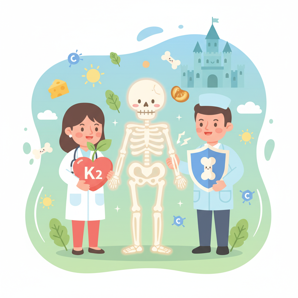 **維生素 K2** 是一種脂溶性維生素,對於凝血功能至關重要,但它在骨骼健康方面也扮演著不可或缺的角色。它主要透過以下兩種方式影響骨骼: