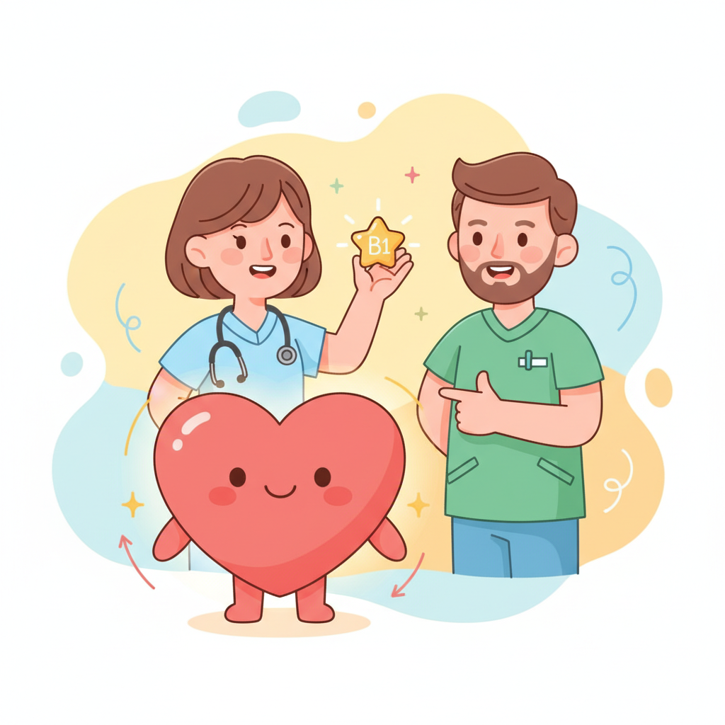 - 改善心臟功能: 研究表明,對於某些心臟衰竭患者,補充維生素 B1 可以改善心臟功能,提升生活品質。這可能是因為維生素 B1 幫助心肌更有效地利用能量,從而增強心臟的收縮力。