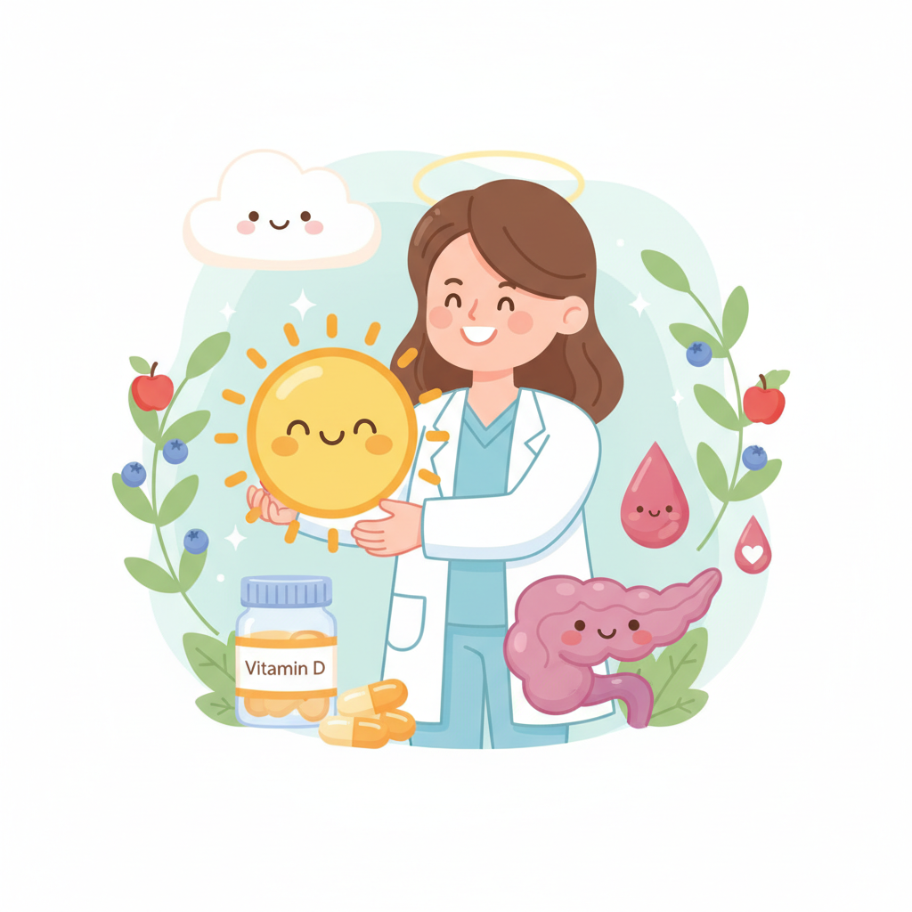 - 影響胰島素分泌:胰臟細胞上有維生素 D 受體。維生素 D 可能參與胰島素的合成和分泌,進而影響血糖控制。