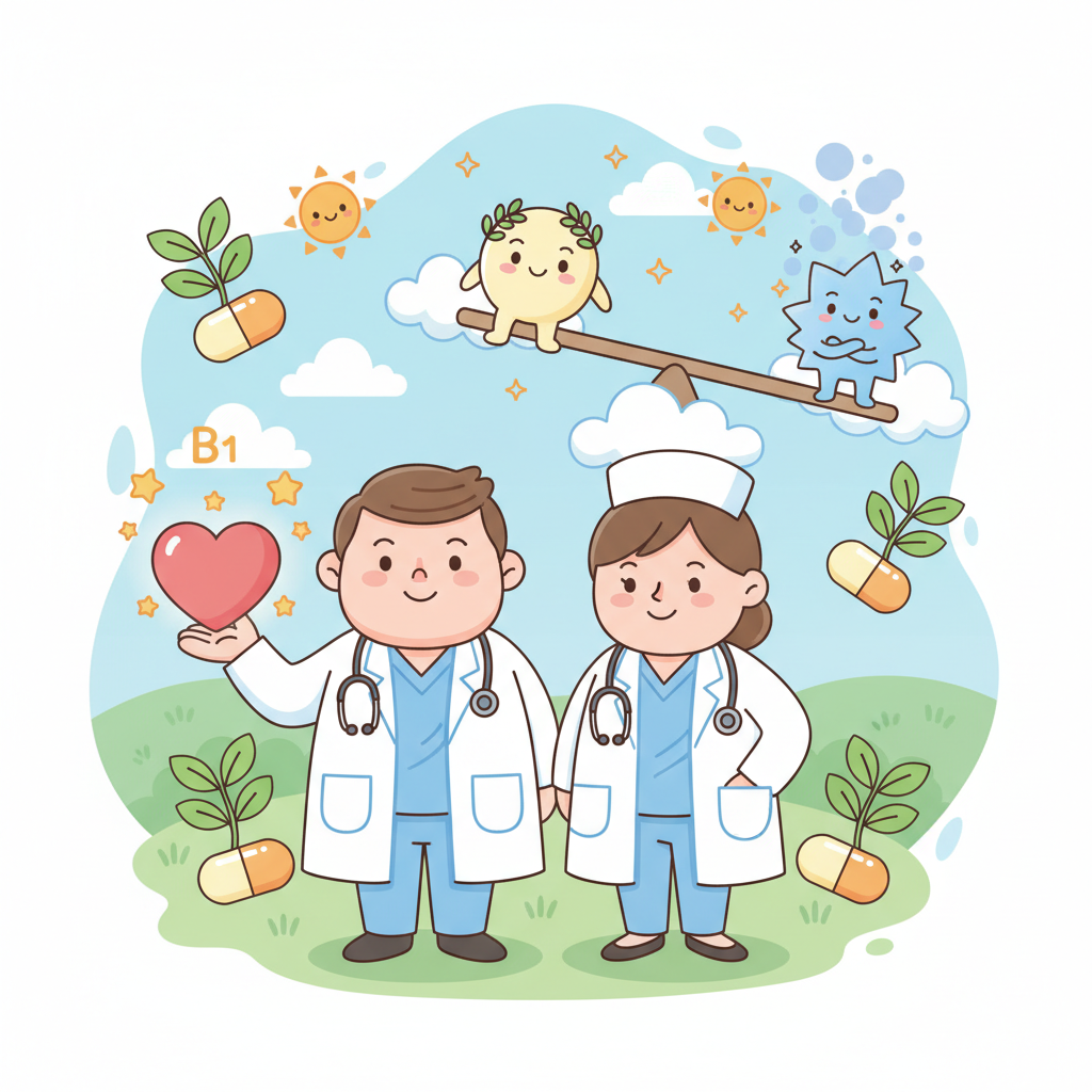 - 促進神經傳導:維生素 B1 對於神經傳導物質的合成至關重要,如乙醯膽鹼,它能影響情緒和認知功能。充足的維生素 B1 有助於維持神經系統的平衡,減輕壓力對情緒的負面影響。