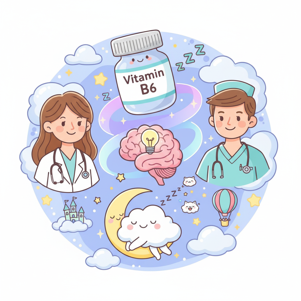 除了對睡眠的影響之外,維生素 B6 最為人所知的就是它對夢境的影響。許多人報告說,在補充維生素 B6 後,夢境變得更加鮮明、生動,甚至更容易記住。這種現象可能與維生素 B6 參與神經傳導物質的合成有關,特別是對於與夢境相關的神經傳導物質。