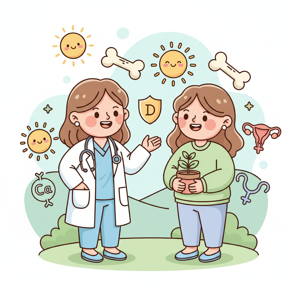 維生素 D 促進鈣質吸收,有助於維持骨骼密度,預防骨質疏鬆症。女性在更年期後,雌激素水平下降,骨骼流失速度加快,因此更需要注意維生素 D 的攝取,以保護骨骼健康。